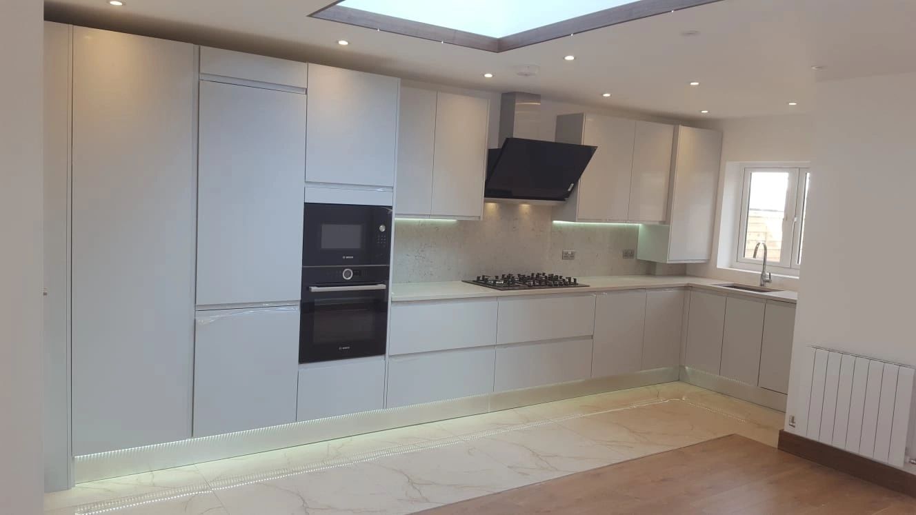 If complete new layout is required then we could completely strip out existing layout to bare walls and alter all services prior to fitting new units and appliances.